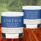 Diese personalisierte Marseille Bleu Hochzeitsbrille kann als Hochzeitsgast-Gefallen für jeden bei Ihrer Feier oder machen Sie hervorragende Brautparty-Gefallen und Dankeschön Geschenke. Ein doppelseitiges Design erlaubt es Ihnen, separaten Text, vorne und hinten hinzuzufügen. Das moderne Design eines üppigen Schattens marineblau gepaart mit einem weichen Ekru ist der Hintergrund für das Hinzufügen von CHEERS oder WILLKOMMEN und im kleineren Schriftart unten, BEST TAG EVER oder TIME TO CELEBRATE etc. Für Brautparty Geschenke verwenden Sie den größeren weißen Schriftart für den Vornamen jedes einzelnen Ehepaarmitglieds und den kleineren Schriftart unten für die Titel Ihres Hochzeitsfeiermannes wie Brautjungfrau, Trauzeuge, Trauzeuge oder Brautmutter. Dunkelblauer Text auf der unteren Ecru-Portion ist der perfekte Ort, um die Namen der Braut und Bräutigam und das Hochzeitstag hinzuzufügen. Die Rückseite dieser speziellen Hochzeitswhiskey-Brille hat bis zu vier Linien in Weiß auf der Marineblau, wo Sie etwas wie DANK YOU FOR FEIBRATING WITH US oder Ihre eigene kurze Botschaft hinzufügen können, während der untere blaue Text auf ecru ein einfaches MIT LIEBE UND DANKS und die Namen der Braut und Bräutigam wieder.