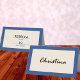 Erstellen Sie Ihre eigenen Marseille Bleu gefaltete Hochzeitsstipps mit oder ohne Zeilen für den Namen und die Tischnummer und benutzerdefinierten Text auf der Rückseite. Diese leicht zu personalisierenden Eskorte sind ein helles marineblau mit einem weichen Ekru-Block auf der Vorderseite mit optionalen Linien für die Namen und Tischnummern der Gäste. Die Rückseite jeder personalisierten Hochzeitsfeier Platzkarte hat einen weißen Text, wo Sie die Namen der Braut und Bräutigam und das Hochzeitsdatum hinzufügen können, oder eine einfache Danksagung.