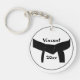 Accrochez vos clés du Porte - clé de ceinture noire des Arts martiaux ou joignez-les à votre sac d'équipement pour identification. Personnalisez-le avec votre propre nom, année et photo à l'envers. Ce porte - clé de ceinture noire personnalisé est muni d'une ceinture noire attachée dans un noeud et d'un arrière - plan blanc.