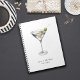 Dieses außergewöhnliche Notizbuch für einen beruflichen Barkeeper oder für einen guten Martini-Fan ist mit einem einfachen Martini-Glas mit einem frischen Martini und einem Zahnstocher mit Oliven ausgestattet. Es hat eine schlichte Eleganz, die Stil und Professionalität ausstrahlt. Der Name und der Titel auf der Vorderseite der Karte sind mit Kleinbuchstaben gekennzeichnet, die den Reiz noch verstärken.