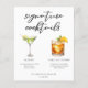 Cette feuille de papier de menu à cocktails chic et signature présente une typographie noire simple au-dessus de 2 boissons et leurs ingrédients pour votre bar mariage. Un joli Martini et un dessin Dark & Stormy ajoutent une touche cool à votre menu de bar. Complétez avec les noms du couple et la date de leur réception.