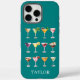 This case is so fun! It has 12 different types of martinis in watercolor on a teal background and your name in a modern CAP font in white. You gotta get it!!!