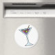 Ein buntes Martini-Glas, gefüllt mit einem schweren Regenbogen mit Cocktail-Spaß und mit einem klassischen Cocktail-Oliven auf einem Martini-Pick. Ideal für jede Feier zum Party oder zur Happy Hour.
