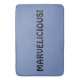 Große Badmatte mit blauer Hintergrundfarbe und Spaß zitieren, der Ihnen sagt, wie groß Sie schauen, wenn Sie in oder aus Ihre Badewanne heraus treten.