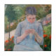 Mary Cassatt - Mädchen nähen im Garten Fliese