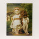 Dieses Design zeigt ein Gemälde des britischen Symbolistin George Frederick Watts (1817-1904). Es ist ein Portrait eines jungen Mädchens namens Mary Fox, das in ihrer feinsten Kleidung gekleidet ist: Sie trägt ein weißes Kleid mit einem roten Hut und roten Schuhen. Das Mädchen hat ihren Arm um ihren Begleithund, was ein spanischer Zeiger ist. Hund und Mädchen sind in einer ländlichen Landschaft stehend, mit grünen Hügeln und Bäumen im Hintergrund. Es ist ein Sonnenuntergang am Himmel. Das Originalwerk wurde 1854 von G.F. Watts gemalt.