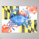 Maryland-Flagge und blaue Krabbe Poster