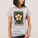 Maßgeschneiderter T - Shirt für Frauen mit März Geburtsmonat-Blume, das Daffodil, mit "März" und "Neuanfang, Glück, Freude" auf einer illustrierten Tarot-Karte.