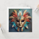 Temática carnaval. Máscara veneciana con plumas en fondo rugoso. Invitación personalizada.