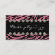 Trendy Make-upkünstler-Geschäftskarten mit schönen rosa und schwarzen Zebrastreifen mit einem simulierten schillernden Glitter schauen und den Fake-Kristall, die digital auf der Front der Geschäftskarten gedruckt werden. Personifizieren Sie die Front mit Ihrem Unternehmensinformationen- und Kontaktinfo auf der zweiten Seite mit eingeschlossenen dem Seitendrucken zwei. Fertigen Sie den Textplan, die Textfarbe und die Hintergrundfarbe auf der Rückseite besonders an. Beste Visitenkarten für Schönheit, Make-up, Kosmetik oder Cosmetology.