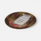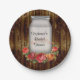 Brautparty-Design mit Mason-Glas und Kränzereien mit bunten Rose und Blume, auf einem dunkelbraunen Vintagen Holzputz-Hintergrund. Ein rustikales Sommerthema im Freien für ein Land- oder Kabinenthema-Brautparty. Reiche dunkelbraune Holzplatten aus einem antiken Zaun oder Fußboden kontrastieren mit einer schönen hübschen Blumengrafik. © CustomInvitesOnline.com
