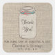 Dieser rustikale Hochzeitsaufkleber ist mit einem Burlap-Look-Hintergrund und dem Bild eines Maurerkirschers mit einem Band versehen, der Ihren Hochzeitsfarben entspricht. Passen Sie Ihre eigene Nachricht, Namen und Hochzeitstermin an. Ideal für Taschen mit Vorzug!