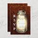 Ein rustikaler Mason Jar auf einem dunklen Bretterboden schmückt diese UAWG. Dies ergänzt die rustikale, landschaftliche, sommerliche oder Scheunenhochzeit und koordiniert perfekt mit der Mason Jar Wedding Einladung.