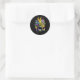 Ajoutez une touche de glamour Mardi Gras avec cet autocollant rond noir qui montre un masque décoré dans les violets, les dorures et les verts. La fleur de lis incluse dans la conception du masque.