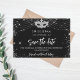 Une petite fille et tendance Enregistrer la carte Date pour une mascarade d'anniversaire de 50e (ou tout âge). Un arrière - plan noir classique décoré de faux éclats d'argent et d'un masque masqué. Personnalisez et ajoutez une date et un nom/âge. Le texte : Save the Date est écrit avec un grand script de style à la main tendance.