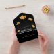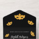 Ein schwarzer Hintergrund mit vergoldeten Maskeraden aus Imitaten. Personalisieren Sie Ihren Namen und die Details. Weiße Buchstaben.