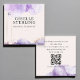 Mit dieser modernen quadratischen Visitenkarte mit einem beruhigenden lila Aquarellhintergrund und einem scannbaren QR-Code fördern Sie Ihren Wellnessbereich. Dieses individuell gestaltbare Design ist perfekt für Massagetherapeuten, Wellness-Center-Profis und ganzheitliche Wellness-Spezialisten geeignet und hebt Ihren Namen und Ihre Dienstleistungen hervor, indem es den Kunden einen sofortigen Zugang zu Ihrer Buchungsseite, Ihrer Website oder Ihren Kontaktdaten ermöglicht. Das quadratische Format fühlt sich stilvoll und einzigartig an, während die lila Palette Entspannung, Heilung und Professionalität vermittelt.