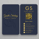 Elegante blaue und goldene Massage-Therapeuten Visitenkarte mit einem fetten Monogramm, modernem QR-Code und anpassbaren Details. Perfekt für Massagetherapeuten, Wellness-Center-Profis und Wellness-Praktiker, die eine stilvolle, berufliche und luxuriös inspiriert Brandingkarte gewollt haben.
