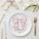 Maßgeschneiderte Aquarellfarbe Rosa Bow 1. Geburts Pappteller