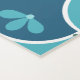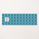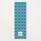 Ein klassisches Jakobsdesign, ergänzt durch kleine Volkskunst, inspirierte Blumenelemente in wunderschönen Meeresfarben aquamarin, blau und grün verzieren diese leicht mit Monogramm Yogamat. Alle Farben, einschließlich des Hintergrunds auf beiden Seiten, können für ein wirklich einzigartiges Aussehen in jeder Farbe bearbeitet werden.