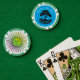 Erstellen Sie Ihre eigenen personalisierten Poker-Chips, die den Geist Ihres Golfclubs feiern! Diese speziellen Chips sind mit dem Logo des Clubs in der Mitte versehen, flankiert vom Clubnamen am oberen Rand in fett lesbaren Texten, können aber auch Text oder Zahlen für Stückelungen hinzufügen oder sogar das Ligajahr zum Gedenken an eine besondere Saison. Diese Chips aus haltbarem Lehm sind ideal für Poker- und Clubabende oder als einzigartiger Sake für Mitglieder und Gäste. Diese Poker Chips des Golfclubs sind perfekt für alle Spielarten geeignet und bringen Ihnen eine Touch des Platzes ins Spiel!