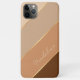 Moderne dunkelkaffeebräune, Bräune, Beige und gürlich glamouröse Imitate goldfarbene gestreifte Muster Handy Gehäuse. Mit Raum zum Anpassen mit einem Namen, Monogramm oder Initialen Ihrer Wahl. Schönes, modernes und cooles Cover für den Trend-geschickten und kunstliebenden angesagten Trendsetter, künstlerischer Motif-Liebhaber, der will, ihr Handy vor Staub und Schmutz, Abnutzung und Tränen zu schützen. Dieses Design ist für Apple iPhone 6, 7, 8 Plus, 10 oder X, XR, XS, 11, 12, 13 Mini und 14 Pro Max Handy Hüllen erhältlich. Zeigen Sie Ihren Stil, sehen Sie in der Mode und fühlen Sie sich stilvoll mit einem einzigartigen Design auf einem mobilen Zubehör Ihrer Wahl.