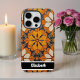 Dieses auffallende Handy-Cover zeichnet sich durch ein wunderschön strukturiertes, impasto Ölgemäldemuster aus, das ein aufwändiges mandalaähnliches Blumendesign in lebhaften Orangen, Gelben und Cremes vor einem tiefen grauen Hintergrund zeigt. Die markanten, taktilen Pinselstriche verleihen ihm einen raffinierten, künstlerischen Flair. Ein schwarzes Bar am unteren Rand bietet Personalisierung mit einem Namen wie "Elizabeth"; wenn man keinen Namen will, kann man ihn und alle anderen Elemente, die man nicht mag, aus dem Designwerkzeug entfernen und ein wirklich maßgeschneidertes Smartphone-Accessoire erstellen.
