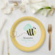Hummelplatte. Eine niedliche Biene mit minzgrünen Flügeln und Wabenhintergrund. Ideal für eine unbekannte Babydusche oder Geburtstag.