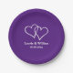 Royal lila ineinander greifende Herz benutzerdefinierte Party Platte für Hochzeit, Verlobung, Paare Grillen, Jubiläum etc. Romantische interverriegelte Herzdesign mit individuellem Farbhintergrund.