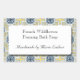 Maßgeschneiderte Seife-, Backen- oder Handaufkleber mit Schriftzeichen und Blockbuchstaben auf einem Imitat mit Fliesenmuster aus Blume und Blätter in blau, weiß und gelb, mit handgemaltetem Ambiente.