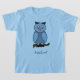 Individueller T - Shirt für alle Kinder, die Eulen und Vögel Liebe. Schönes Design mit einer blauen Eule im Comic-Stil. Personalisieren Sie den Namen und machen Sie ihn einzigartig.