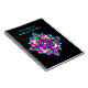 Ein elegantes, schwarzes Spiral-Notebook mit einem brillant farbigen, traditionellen Rangoli-Muster in schockierendem Rosa, Türkis, Neon-Grün und Beige, von einem digitalen Design von Judy Adamson.