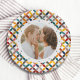 Custom Foto Moderne farbenfrohe Personalisierte Paper Party Teller mit einem farbenfrohen, modernen geometrischen Muster mit Ihrem Lieblings-Foto in der Mitte. FOTO TIPP: Zentrieren Sie Ihr Foto vor dem Hochladen nach Zazzle. Von Evco Studio entworfen www.zazzle.com/store/evcostudio