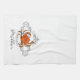 Maßgeschneidertes Crab Küchentuch - Mit dem ersten und zweiten Namen individuell anpassen. Die Buchstaben sind dunkelgrau und passen zu den Schnörkeln. Krabbe ist orange rot.