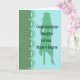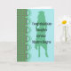 Herzlichen Glückwunsch für Ihre Tochter, als sie ihren Master-Abschluss erhalten hat. Das Design hat eine Silhouette eines Mädchens in einer Kappe und in einem Kleid und ist so gemacht, dass es wie ein Notebook aussieht. Die Farben sind grün und helltürkis. Eine spezielle Karte für eine besondere Person.