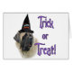Wird es dieses Halloween Tricks oder Treats sein? Unser Urlaubsdesign hat Ihre Lieblingshunde Rasse, die mit der Faune beschichtete Mastiff, mit einem Hexenhut tragen. Fügen Sie ein wenig 'Hocus Pocus' zu All Hallows' Eva in diesem Jahr hinzu!