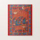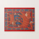 Eine Marmeladenkatze und ein Kätzchen stehend auf einer rot, blau und gelb getauchten Matte. Jigsaw Puzzle mit einem anpassbaren Design für Sie, um mit Ihrem eigenen Text, Bildern und Ideen zu personalisieren. Ein origineller Bleistift, der von Jess Perry gezeichnet wird.