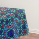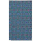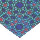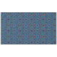 Ein kompliziertes, kaleidoskopisches Muster bedeckt die Oberfläche mit lebhaften Blautönen, Grün und Rot. Geometrische Formen verflechten sich nahtlos und schaffen ein faszinierendes, symmetrisches Design. Die Wirkung ist insgesamt lebendig und visuell faszinierend.