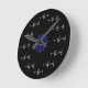 Die Zahlen auf der Uhr werden durch quadratische Gleichungen ersetzt, deren Lösungen die Stunden oder Minuten angeben.