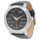 Uhr, Vintage Männeruhr mit schwarzem Lederarmband