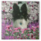 Eleganz, Charme und Sanftheit - Matisse in den Blumen ist ein spunky Papillon Welpe, der in einer Wiese der empfindlichen Blumen umgeben wird. Matisse sitzt bequem entlang der Seite eines Hügels, der mit Lavendel, Moosbeerrottönen, sahnigem Weiß, gedämpften Purpur, subtilen Grüntönen und Mischungen von Rosa gefüllt wird. Er Lieben, die in der Natur umgeben durch schöne Blumen der hochroten Rottöne, hübsche rosa Mohnblumen, Lavendelheide und weißer Hartriegel, aus den Grund sitzen und von den Himmeln fallen. Matisse ist ein kleiner Hund mit langem größtenteils weißem seidigem Pelz. Sein Gesicht und Ohren sind alle schwärzen, einschließlich seine Ohren, die oben gerade und wachsam stehen. Seine seidenen Ohren und dunkelbraunen Augen engagieren durchaus, sich während er in seinem fantasievollen Blumenstrauß der Blüten sitzt. Er trägt einen hellen Himmelblauumbau, der weg von seinem Kragen hängt. Sie können sein weißes shaggy Schwanzwellenartig bewegen sehen. Sie können Frieden, Ruhe und das Heilen erfahren, während Sie meine Arbeit betrachten.