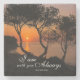 Der Untersetzer aus Inspirationsschriftstein zeigt ein schönes Naturfoto eines goldenen Sonnenuntergangs, der im Wasser gerahmt von malerischen Bäumen reflektiert wird. Es zeigt Bibelverse Matthew 28:20, in den Worten von Jesus: "Ich bin immer bei dir."_