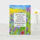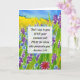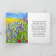 Christliche Zitat-Grußkarte zeigt ein künstlerisches Aquarellbild mit lila und blauen Blumen, Grünpflanzen und blauem Himmel. Es zeigt Bibel Verse Matthew 5:44, in den Worten Jesu: "Aber ich sage euch: Liebe eure Feinde und bete für diejenigen, die euch verfolgen." Das Grußgebet kann für eine handschriftliche Notiz personalisiert oder gelöscht werden.