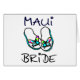Le mariage Maui conserve des parts et des cadeaux pour les épouses attachant le noeud à Maui, Hawaii. Photo de tongs de plage ornés de cloches mariages bleues. Personnalisez ces cadeaux de mariage et t-shirts de destination avec des dates ou des noms.