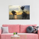 Weich schwingende Palmen vor pastellfarbenen Wolken, während die untergehende Sonne im Ozean in Kahana, Maui / Hawaii reflektiert. Auch Karo aus der b&w und sepia Version.