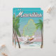 Illustrierte Karte von Mauritius in einem schönen Vintagen oder Retro-Stil, mit einem Flugzeug, das auf einem schönen Strand landet.