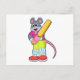 Maus auf Cricket mit Cricket-Fledermaus Postkarte
