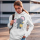 Eine niedliche Maus im Cartoon-Stil, die Käse isst. Dieses Design sieht wirklich effektiv aus bei diesem weiblichen Hoodie