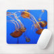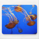 Helle orangefarbene Quallen im hellen Aquarienblau.
