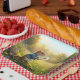 Maus pustet Löwenzahnsämlinge aus Pappteller